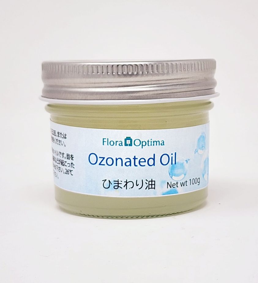 オゾン化油(Ozonated Oil)は、オリーブ油やひまわり油等オレイン酸を含む油脂にオゾンガスを導通して得られる物質です。