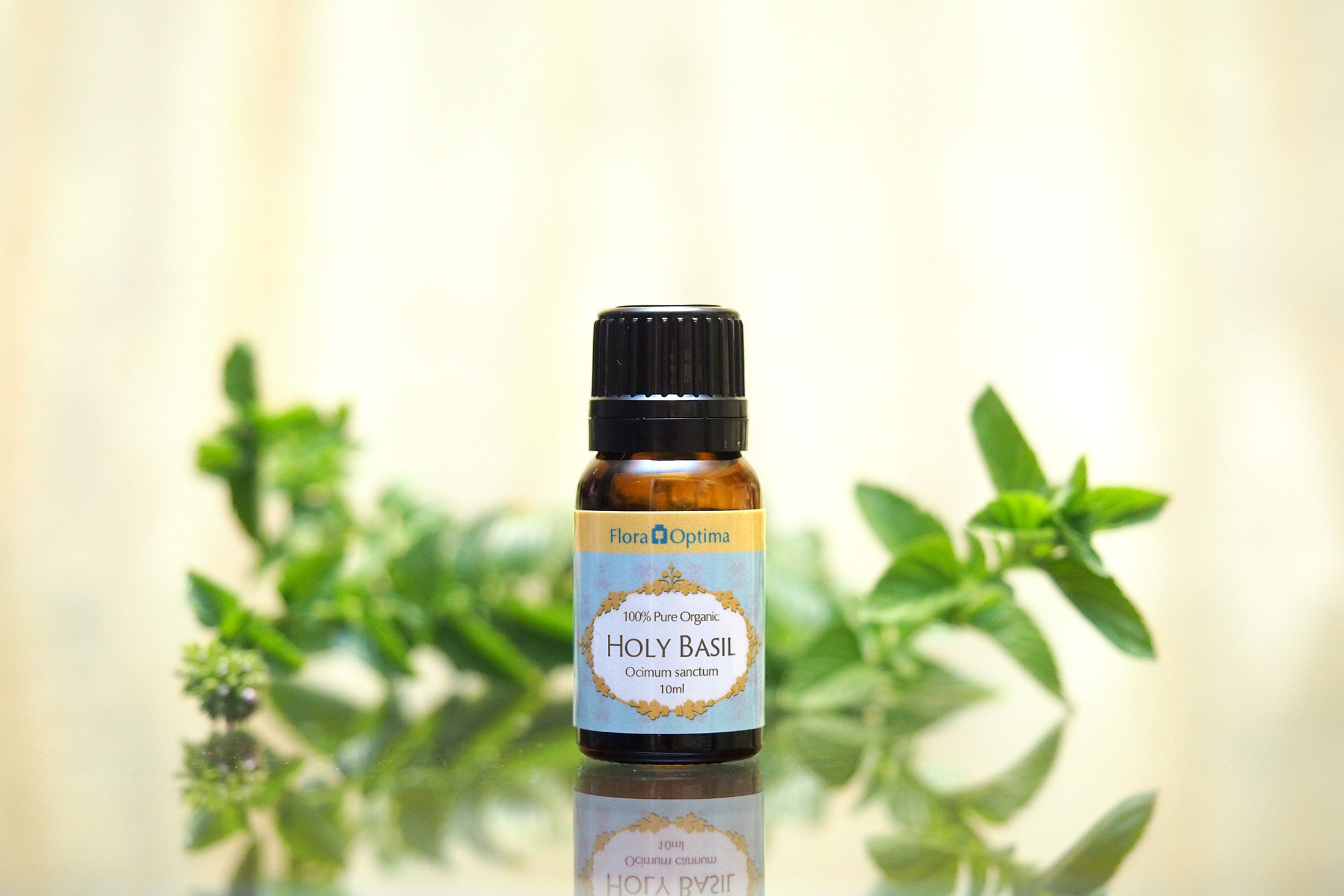 アーユルヴェーダ医学と民間療法の両方で広く使われている、強い芳香のハーブであるホーリーバジル、またはトゥルシーは、心と体を清浄化するものとみなされています。ホーリーバジルは、インドでは縁起の良い保護的な力を持つものとしてヒンドゥー教の中庭に特別な場所を与えられています。薬効がありながら香りのよいユニークな特性のおかげで、この苦みがあってすっきりするミントっぽい薬草は、「生命の万能薬」という名を獲得しました。ホーリーバジルオイルは、強力な薬効でどの自然医学の薬箱にも入っているような「香りの宝石」になっています。
